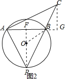 如图2,连接PO并延长,交AB于点F,过点C作CG⊥AB,交AB的延长线于点G,连接OB,
