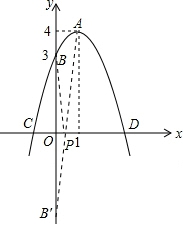 作点B关于x轴的对称点B′的坐标为(0,-3),