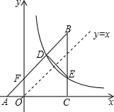 解答:解:如图,∵∠BCA=90°,AC=BC=2,反比例函数y=(x>0)的图象分别与AB,BC交于点D,E,