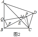(2)如图2,BD=$\frac{3}{2}$FP,理由是:先根据勾股定理求AC、AD、DC的长,由$\frac{AE}{EC}$=2求EC的长,过C作CM⊥BD于M,构建直角△CMP,证明△QFP∽△PMC,列比例式$\frac{FQ}{PM}=\frac{FP}{MC}$,设BF=a,则QF=2a,代入列方程求出PM=a,得到FP=2MC,再由线段的和得出结论.