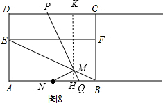 ¢ÛÈçͼ8£¬µ±MN=MBʱ£¬¹ýµãM×÷KH¡ÍCD£¬½»CDÓÚµãK£¬ABÓÚµãH£¬![]()
