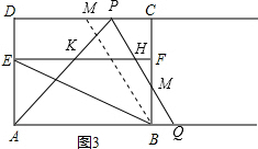 ¢ÚÈçͼ3£¬µ±3£¼t¡Ü5ʱ£¬¼´HµãÔÚFµãµÄ×ó²à»òÖØºÏʱ£¬MΪDCµÄÖе㣬Á¬½ÓMB£¬![]()