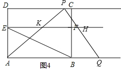 ¢ÛÈçͼ4£¬µ±5£¼t¡Ü9£¬¼´HµãÔÚFµãµÄÓҲ࣬KµãÔÚFµãµÄ×ó²àʱ£¬![]()