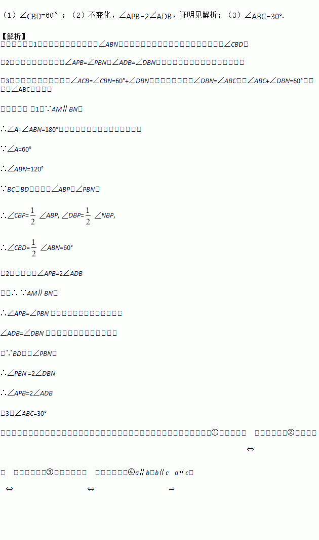 如图,已知AM∥BN,∠A=60°.点P是射线AM上一动点(与点A不重合),BC、BD分别平分∠ABP和∠PBN,分别交射线AM于点C,D.