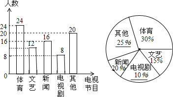 (2)分别根据文艺和电视剧所占的百分比,计算出对应的人数,即可补全统计图;用“文艺节目”所占的百分比乘以360°,即可得圆心角的度数;