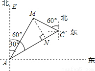 又∵C处看M点为北偏西60°,∴∠MCB=30°.