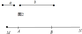 (2)如图2,已知线段a、b,用圆规在射线MN上顺次量出MA=a,AB=b,画出图形,并回答线段MB的长等于什么?