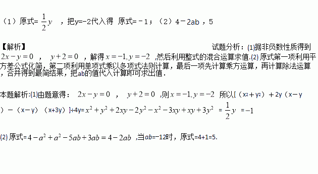 (2)先化简,再求值:(2+a)(2-a)+a(a-5b)+3a5b3÷(-a2b)2,其中ab=-