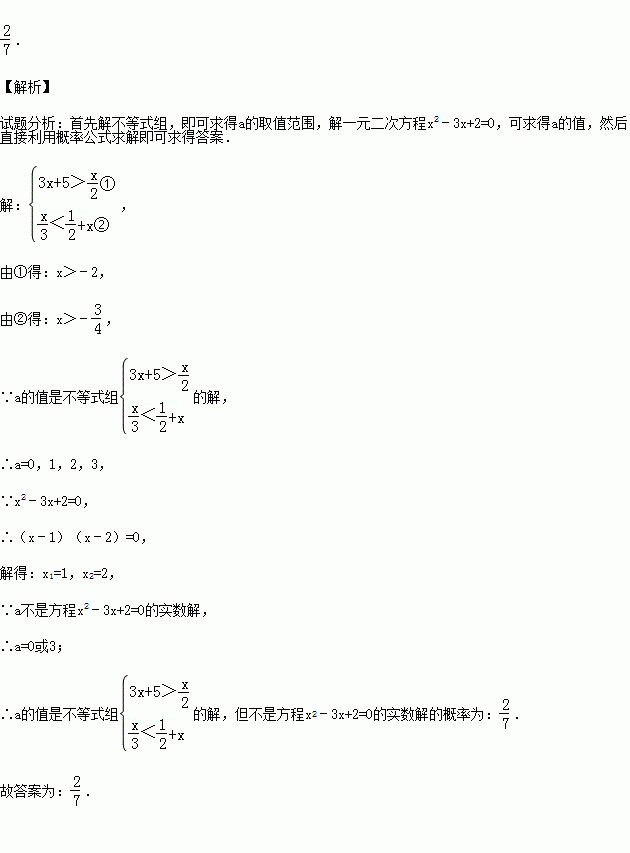 的解,但不是方程x2﹣3x+2=0的实数解的概率为 .