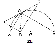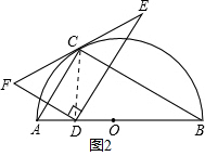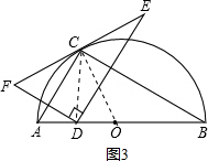 ③连接OC,易证△AOC是等边三角形,AD=OD,根据等腰三角形的“三线合一”可求出∠ACD,进而可求出∠ECO=90°,从而得到EF与半圆相切.