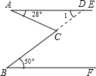 分析:延长BC交AE于点D得到∠1,根据两直线平行,内错角相等得到∠B=∠1,再根据三角形外角性质可得∠ACB=∠A+∠1,代入数据计算即可.