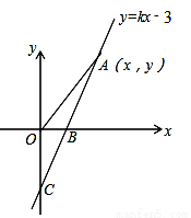(2)若点A(x,y)是直线y=kx-3上在第一象限内的一个动点,当A 在运动的过程中,试写出△AOB的面积S与x的函数关系式,(不要求写出自变量的取值范围).