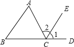 解答:解:如图:根据题意得:AB∥CD,∠1=∠2,