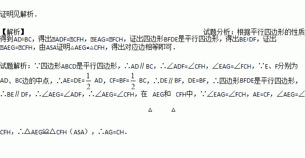 (2)连接BF,若BF⊥AE,∠BEA=60°,AB=4,求平行四边形ABCD的面积.