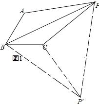 Ö¤Ã÷£º×÷¡ÏPBP¡ä=¡ÏABC=60¡ã£¬ÇÒʹBP¡ä=BP£¬Á¬½ÓP¡äC¡¢P¡äP£¬Èçͼ1£º![]()