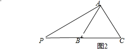 Èçͼ2£¬µ±µãPÔÚCBµÄÑÓ³¤ÏßÉÏʱ£¬![]()