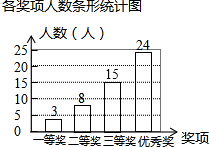 分析:(1)用“优秀奖”的人数除以所占的百分比计算即可得解;