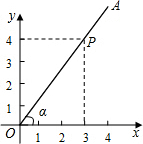 解答 解:如图,OP=$\sqrt{{3}^{2}+{4}^{2}}$=5.所以,sinα=$\frac{4}{5}$.故答案为$\frac{4}{5}$.