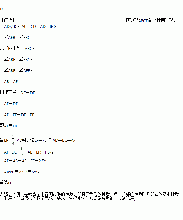 如图,四边形ABCD是平行四边形,BE平分∠ABC,CF平分∠BCD,BE、CF交于点G.若使EF=