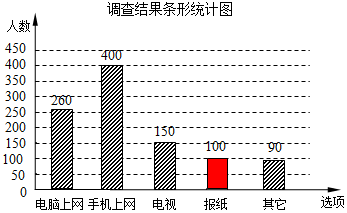 分析 (1)根据电脑上网的人数除以电脑上网所占的百分比,可得答案;