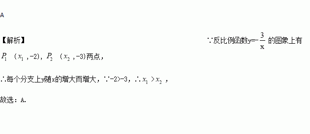 的图像上有P1(x1,-2),P2(x2,-3)两点,则x1与x2的大小关系是( )