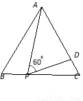 如图,等边三角形ABC的边长为3,点P为BC边上一点,且BP=1,点D为AC边上一点,若∠APD=60°,则CD的长为 .
