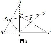 2.小红同学用剪刀将△BCD与△MEF剪去,与小亮同学继续探究.他们将△ABD绕点A顺时针旋转得△AB1D1,AD1交FM于点K(如图2),设旋转角为β(0°<β<90°),当△AFK为等腰三角形时,请直接写出旋转角β的度数;