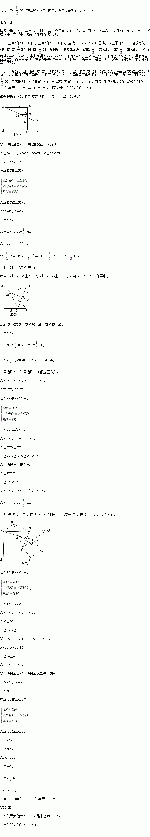 £¨3£©ÒÑÖªBC=7£¬CE=3£¬½«Í¼¢ÙÖеÄÕý·½ÐÎCEFGÈÆµãCÐýתһÖÜ£¬ÆäËûÌõ¼þ²»±ä£¬Ö±½Óд³öMNµÄ×î´óÖµºÍ×îСֵ£®