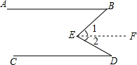 分析:(1)首先过点E作EF∥AB,可得AB∥EF∥CD,然后根据两直线平行,内错角相等,求得∠1=∠B,∠2=∠D,继而证得∠BED=∠B+∠D;