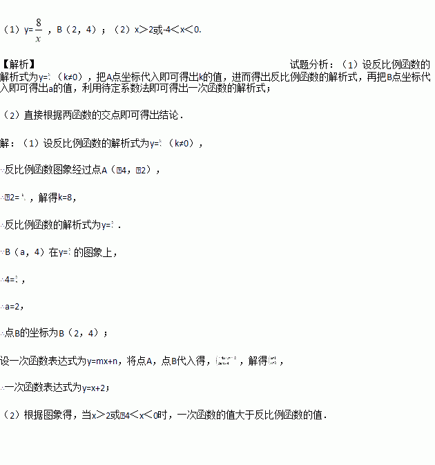 (6分)如图,已知一次函数与反比例函数的图象交于点A(﹣4,﹣2)和B(a,4).