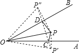 解答 解:如图,作点P关于OA、OB的对称点P′、P″,连接P′P″,![]()
