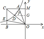 在第二象限内的图象如图,经过图象上两点A、E分别引y轴与x轴的垂线,交于点C,且与y轴与x轴分别交于点M、B.连接OC交反比例函数图象于点D,且