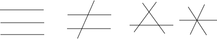 分析:分三条直线互相平行,两条直线互相平行,三条直线都不平行作出图形解答.