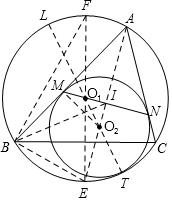 证明:如图,作射线AO2,交MN于I,交⊙O1于E,设⊙O1与⊙O2的切点为T,作直径O1O2,交⊙O1于L,则O1、O2、T共线,