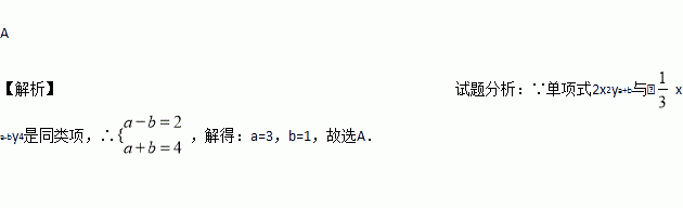 xa-by4是同类项,则a,b的值分别为( )