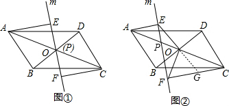 (1)如图①,当点P,于点O重合时,求证:OE=OF;