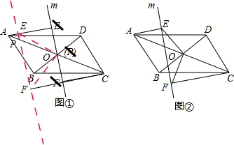 已知,如图,平行四边形ABCD的两条对角线AC与BD相交于点O,直线m与AC相交于点P,作AE⊥m,CF⊥m,垂足分别为E、F,∠APE=60°连接OE、OF.