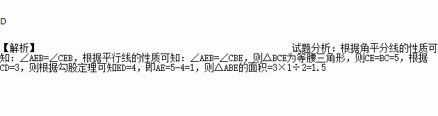 如图所示,矩形ABCD中,AB=3,BC=5,点E在AD上,且BE平分∠AEC,则△ABE的面积为( )
