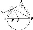 (2)过A做CF⊥AB于F由AB是⊙O的直径得到∠ACB=90°由于∠ABC=30°得到∠A=60°于是得到AC=$\frac{1}{2}$AB=OA=4在Rt△ACF中,∠A=60°,根据$\frac{CF}{AC}=sin60°=\frac{\sqrt{3}}{2}$,求出CF=AC•$\frac{\sqrt{3}}{2}$=4×$\frac{\sqrt{3}}{2}$=2$\sqrt{3}$,再由角平分线的性质即可得到结果.