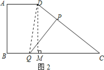 (5)是否存在t,使得P点在线段DC上,且PQ⊥DC(如图2所示)?若存在,求出此时t的值,若不存在,说明理由.