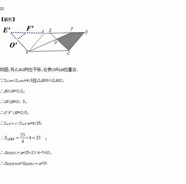 的面积为9,四边形ABOE的面积为7,则图中阴影部分的面积为______________.