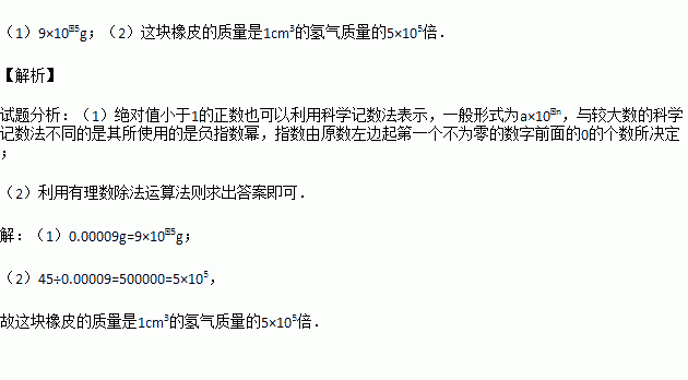 已知1cm3的氢气重约为0.00009g,一块橡皮重45g