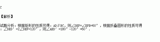 如图,把一个长方形纸片沿EF折叠后,点D、C分别落在D′、C′的位置,若∠EFB=60°,则∠AED′=( )