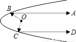 探照灯、锅形天线、汽车灯以及其它很多灯具都可以反射光线.如图所示是一探照灯灯碗,侧面看上去,从位于O点的灯泡发出的两束光线OB,OC经灯碗反射以后平行射出.如果图中∠ABO=α,∠DCO=β,则∠BOC的度数为____.