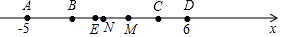 分析 根据A、D两点在数轴上所表示的数,求得AD的长度,然后根据2AB=BC=3CD,求得AB、BC,CD的长度,从而找到E,M,N所表示的数.