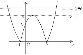 (2)由图象可知,直线y=b与该函数图象有两个交点,则b>4.