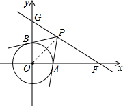 (2)①连接OPOP,根据切线的性质得到OB⊥PB,当OP⊥GF时,线段PO最短,解直角三角形得到OP=$\sqrt{3}$,PB=$\sqrt{O{P}^{2}-O{B}^{2}}$=$\sqrt{(\sqrt{3})^{2}-{1}^{2}}$=2;