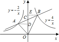分析:作AD⊥y轴于D,BE⊥y轴于E,如图,先证明△ACD≌△BCE得到S△ACD=S△BCE,再利用面积代换得到S△AOB=S△AOD+S△BOE,然后根据反比例函数比例系数k的几何意义进行计算.
