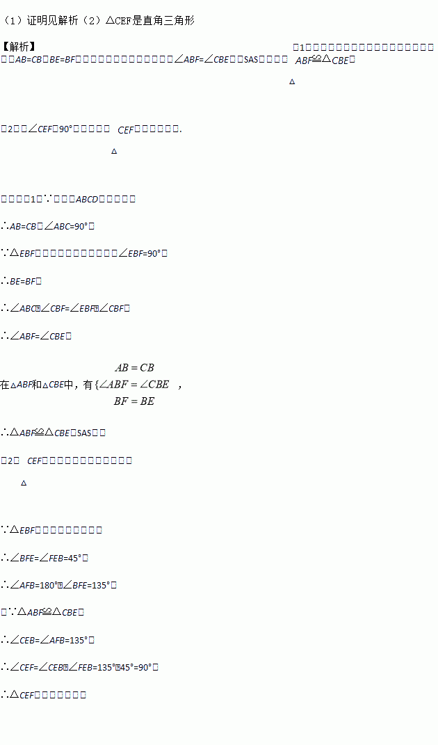 如图,点E正方形ABCD外一点,点F是线段AE上一点,△EBF是等腰直角三角形,其中∠EBF=90°,连接CE、CF.