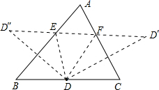 分析:作点D关于AC的对称点D′,点D关于AB的对称点D″,连接D′D″与AB、AC交点即为E、F.